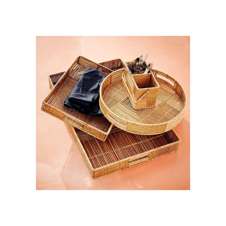 NATURAL ROUND RATTAN TRAY/ Rattan Hand Woven Round High Wall Severing Tray Food Storage Plate for Breakfast, Drinks