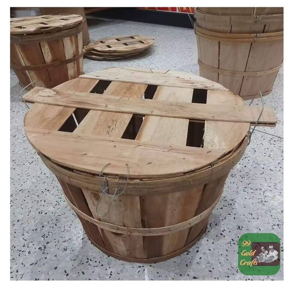 NATURAL WOOD CRAB BUSHEL BASKET WITH METAL HANDLE FOR SEAFOOD STORAGE TRANSPORT PROFESSIONAL