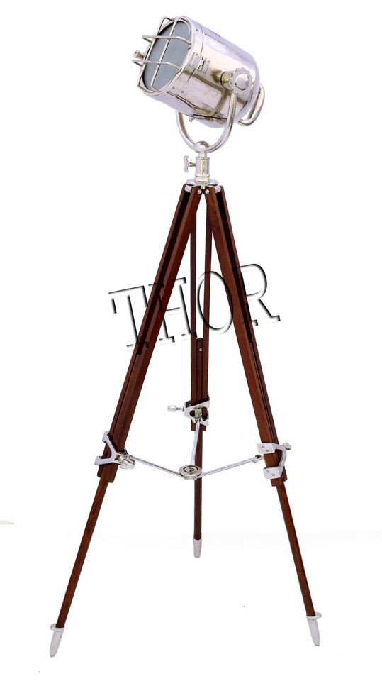 NAUTICAL DESIGNER STUDIO FLOOR LAMP TRIPOD WOODEN STAND SPOT LAMP LIGHT DECOR.