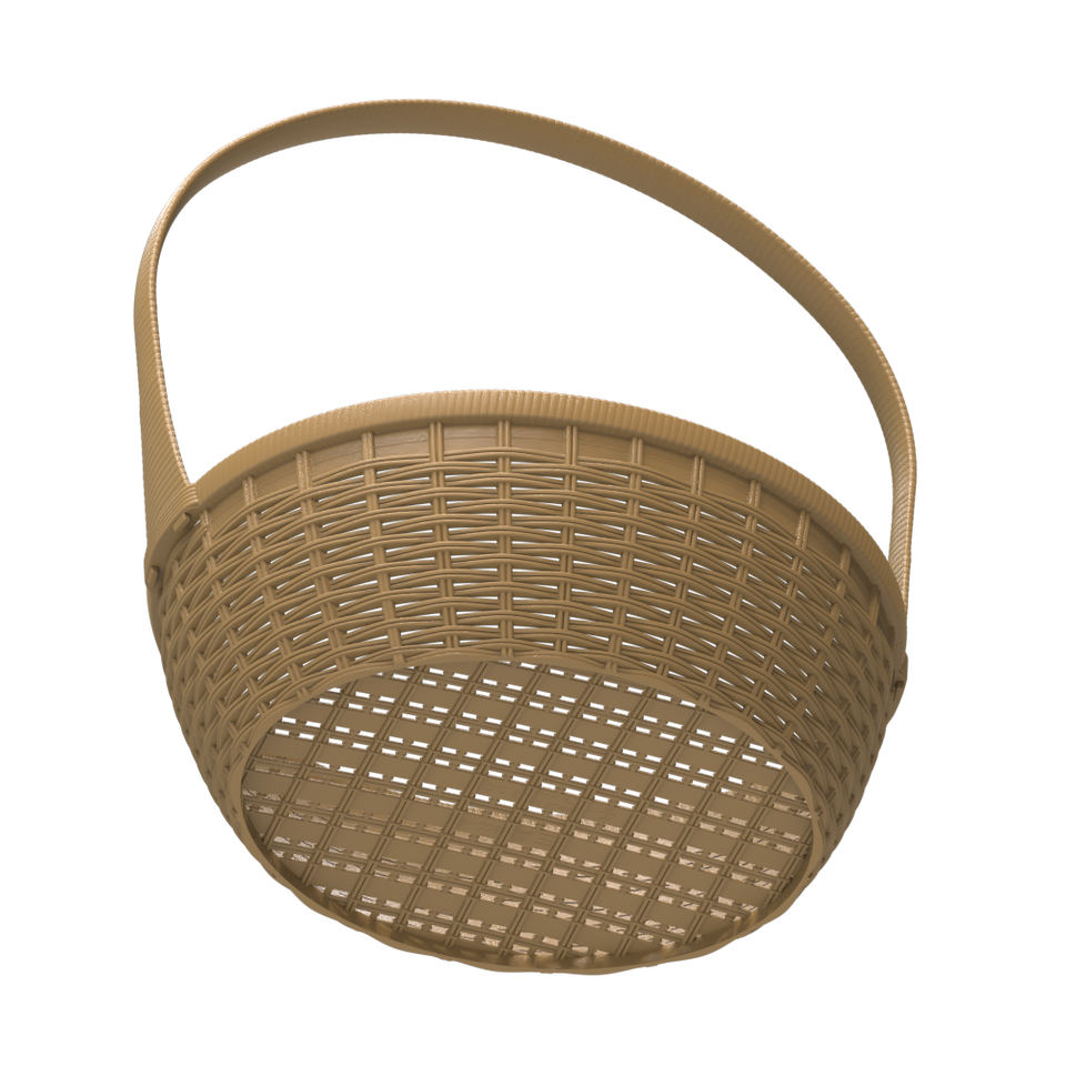 NB01M-H01 PP Bamboo Weave Oval Fruit Basket 38*31.5*45cm with Long Handle -Lightweight Stackable Anti-Mold