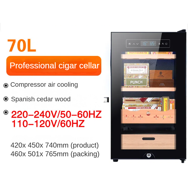 NE-133 Electric Stainless Steel Glass Door Commercial Home Display Case Touch Panel Temp Control 70L Best Cigar Humidor Digital