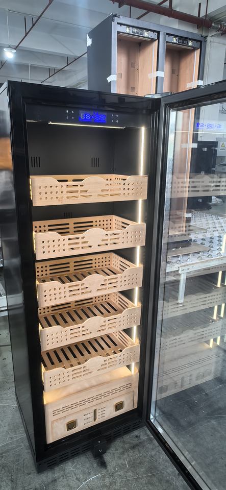 NE-197 Two Glass Doors Durable Digital Display Intelligent Humidity Control Cedar Wood Humidor Cigar Cabinet With Shelves
