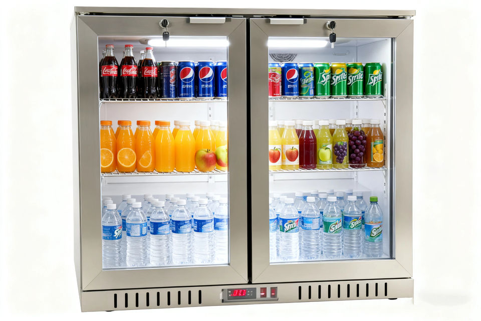 NE-200CS stainless steel Commercial Business Equipment 83CM Undercounter LED Interior Back bar Cooler with 2 Glass Doors
