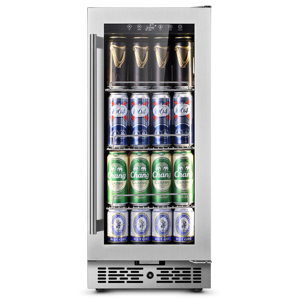 NE-351 Glass Door Beverages Display Cooler Beer Chiller Home Bar Built in 100 Cans Drinks Refrigerator