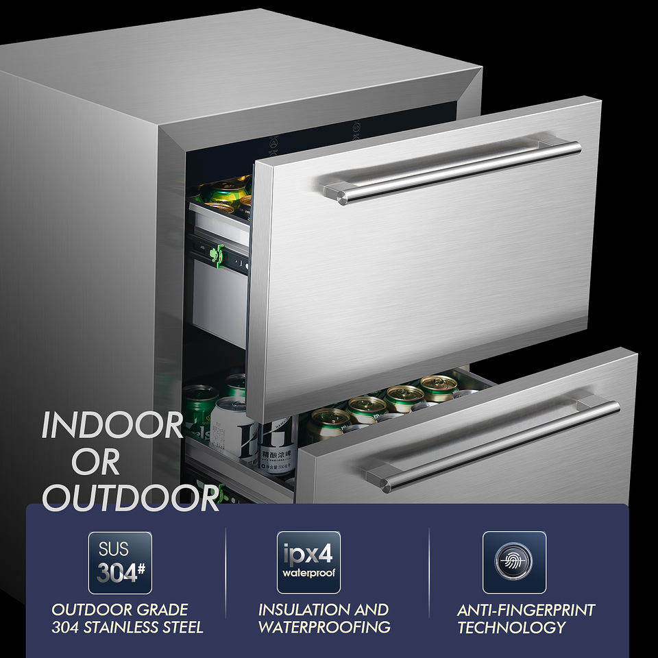NE-359 Custom Full Stainless Steel Indoor Outdoor Refrigerator Dual Zone Digital Display Two Drawer Fridge