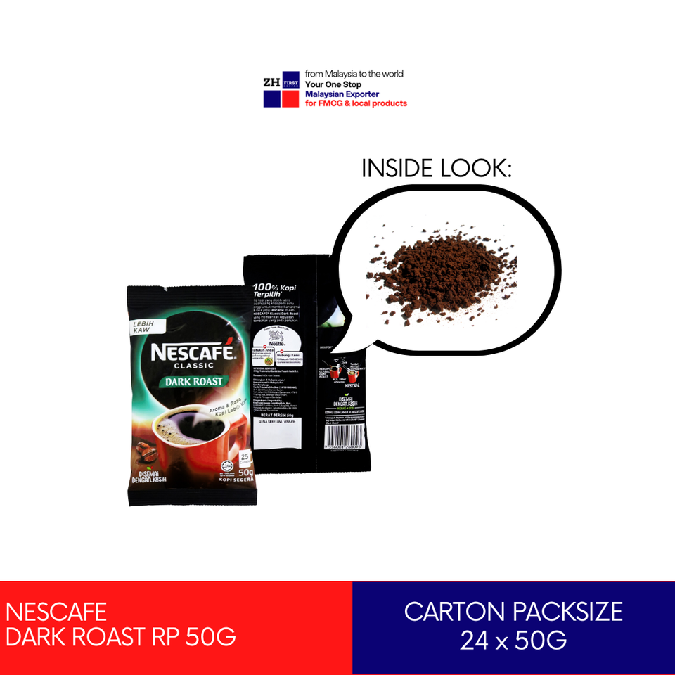 NES Cafe Classic 50g Dark Roast Instant Coffee Robusta Bean Fruit Wholesale Price Bulk Buy Malaysia Authorized Distributor