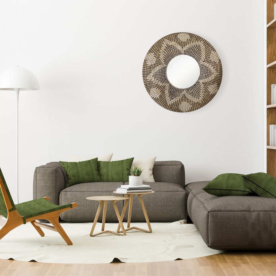 NEW ARRIVAL Floral Shaped Seagrass Wall Mirror, Eco-friendly Durable Framed Wall Mirrors for Livingroom Bedroom Hotel
