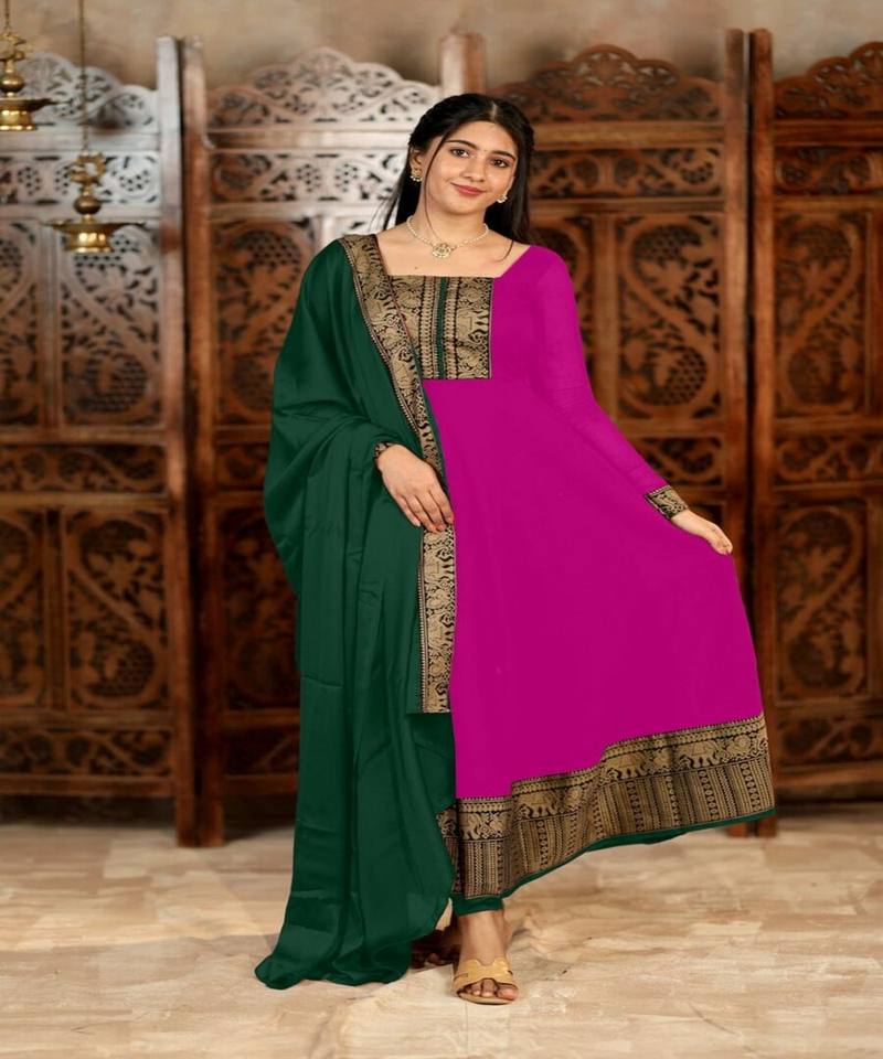 NEW ARRIVAL VICHITRA SILK JACQUARD LACE WORK ANARKALI TOP WITH DUPATTA DAILY WEAR WHOLESALE PRICE ETHNIC GARMENT PINK