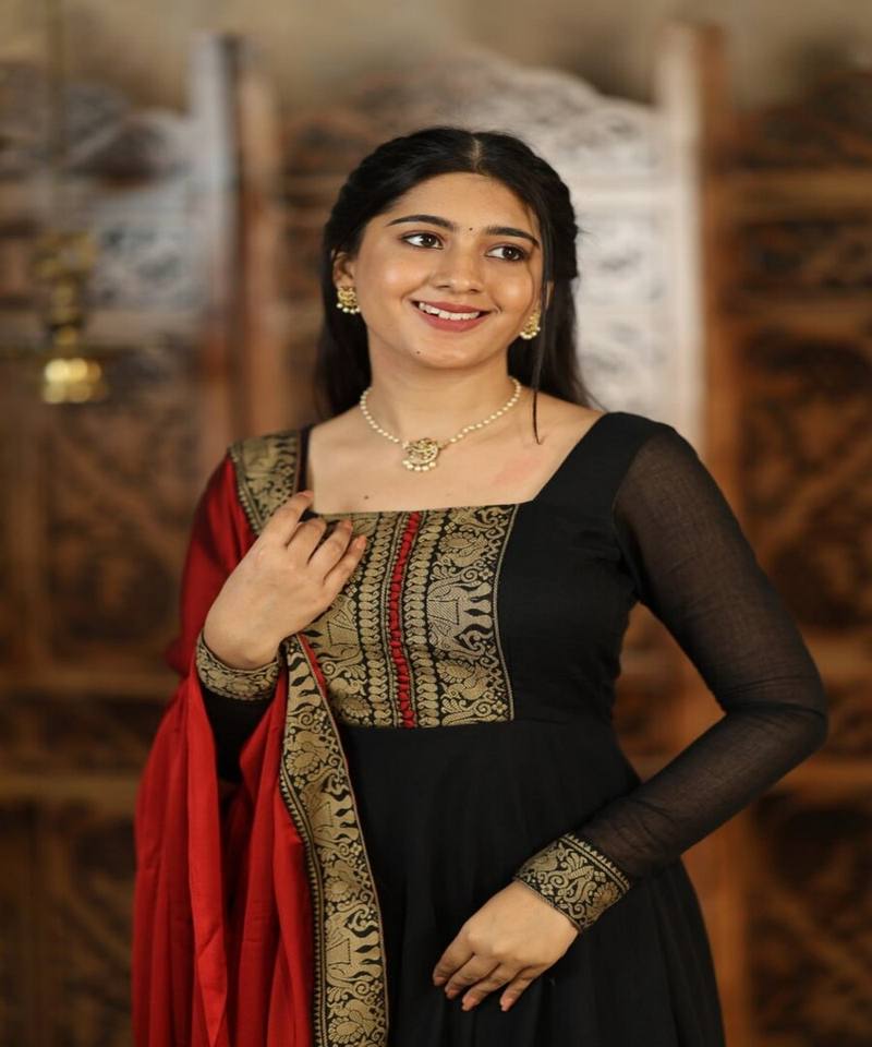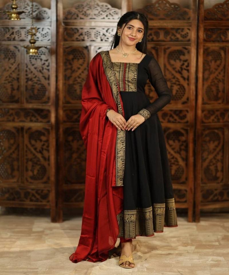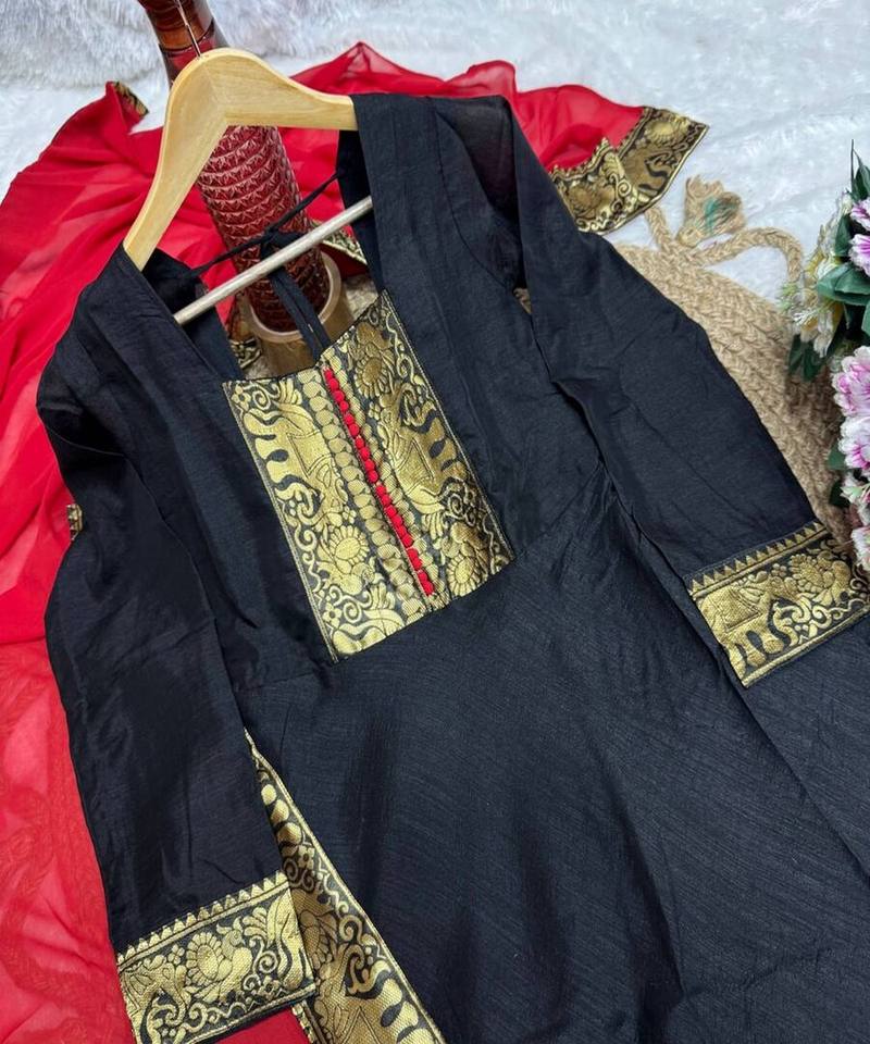 NEW ARRIVAL VICHITRA SILK JACQUARD LACE WORK ANARKALI TOP WITH DUPATTA DAILY WEAR WHOLESALE PRICE ETHNIC GARMENT BLACK