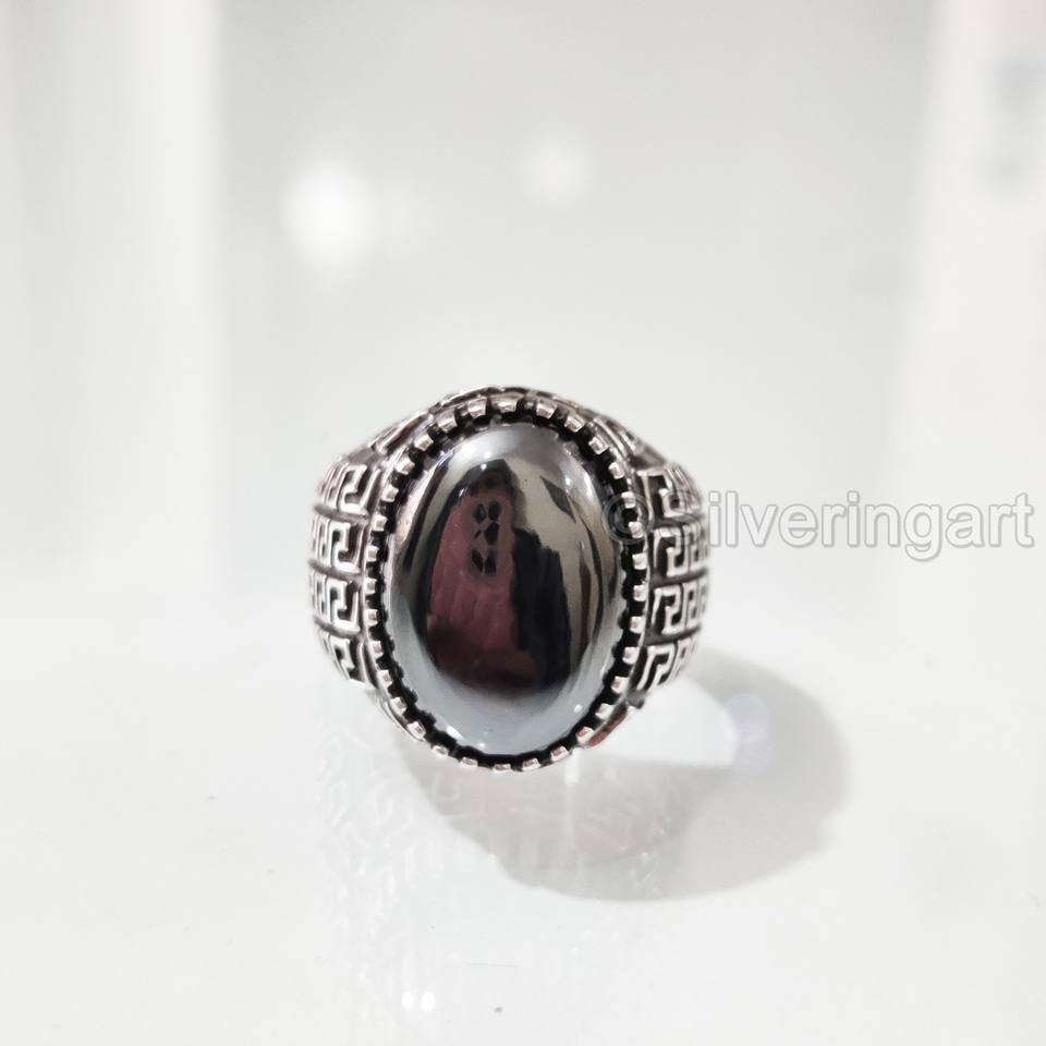 NEW Arrival Mens Ring Natural Hematite Gemstone Birthstone Ring All Sizes Ottoman Birthday Gift Jewelry 925 Sterling Silver Ring