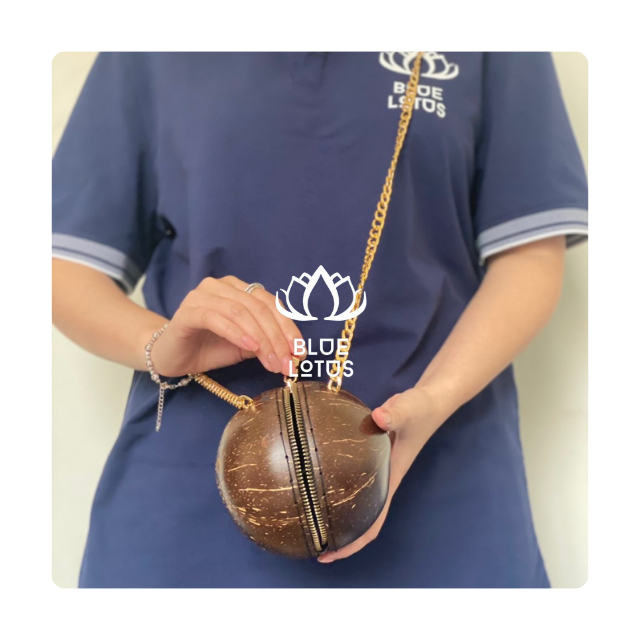 NEW DESIGN VIETNAM HANDMADE COCONUT SHELL BAG for WOMEN CUSTOMIZED ZIPPED COCONUT SHELL PURSE FASHION MS AMELIA +84855014447