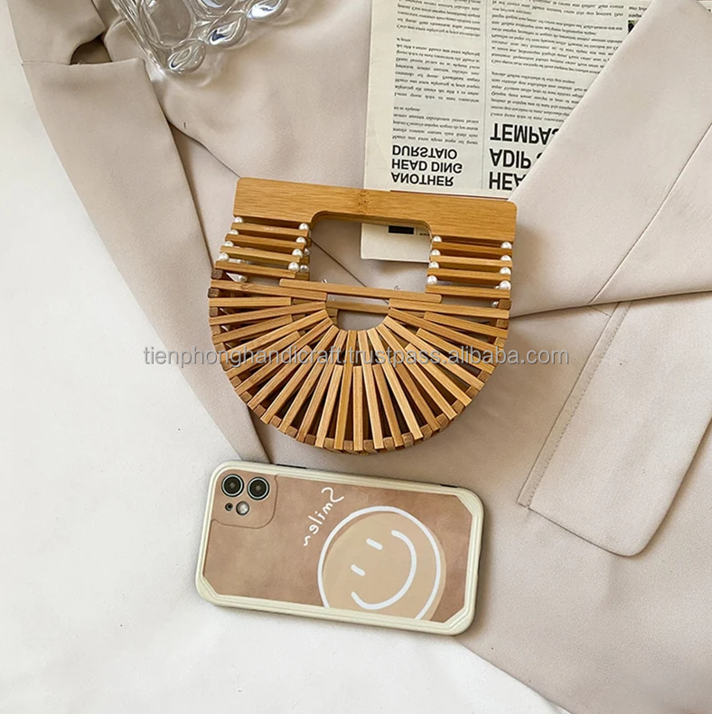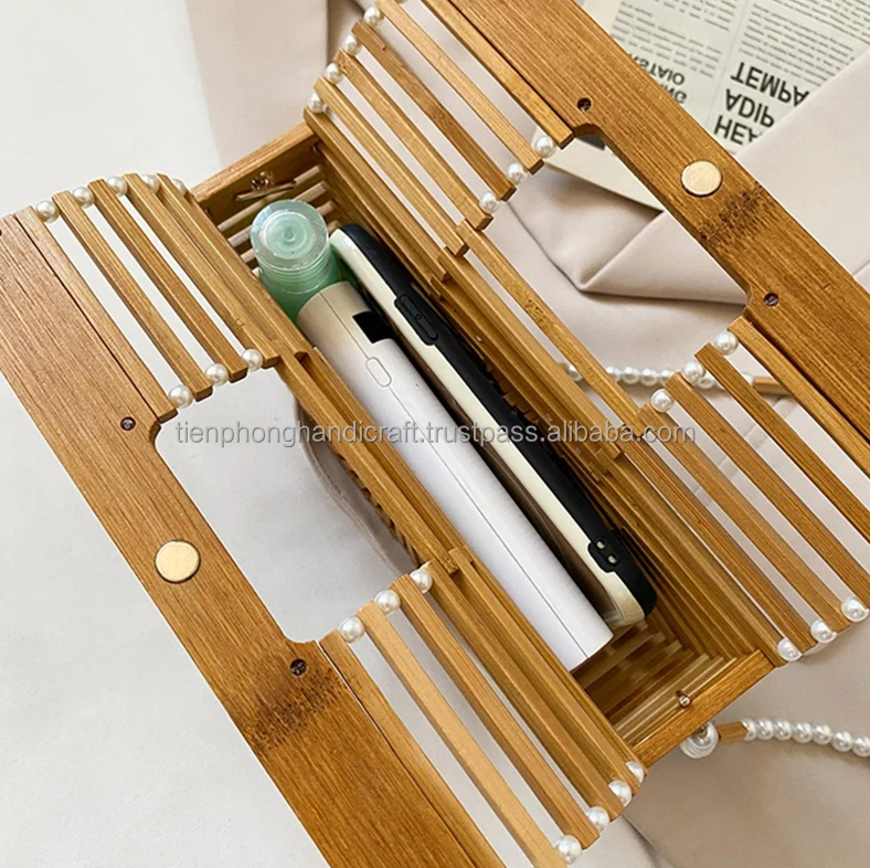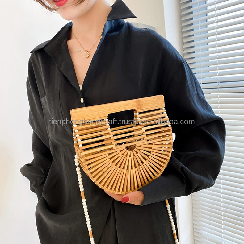 NEW FASHION Women Handbag 3 Sizes With Pearl Chain | Natural Bag, Beach Bag, Retro Bamboo Bag | Tienphong Handicrafts