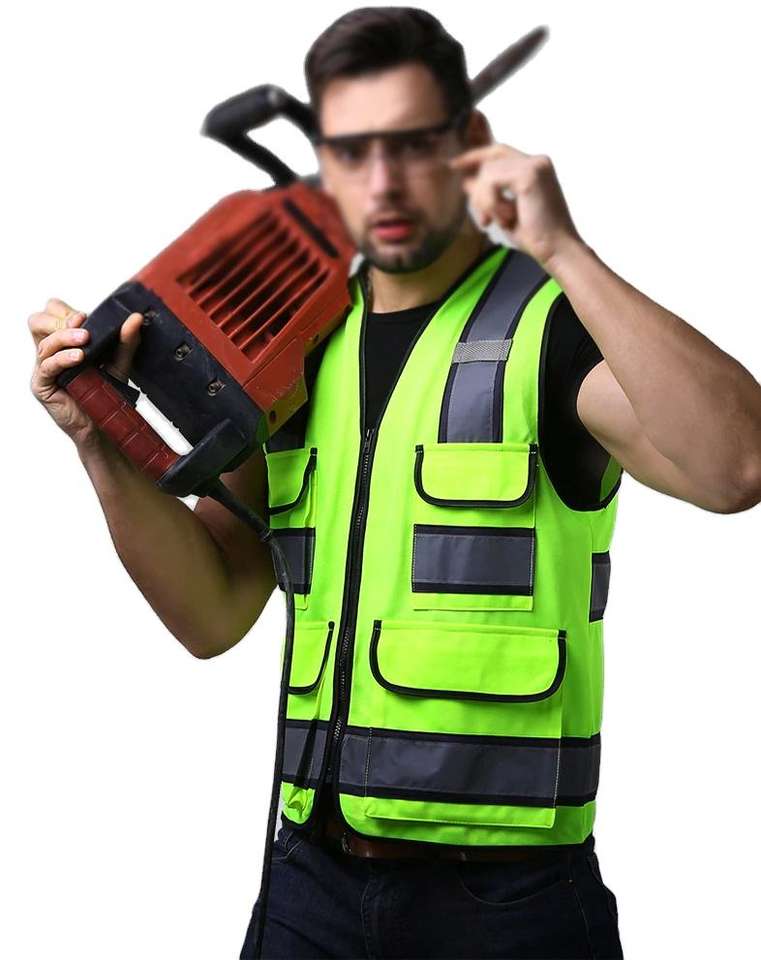 NEW High Visibility Multi Pocket Security Reflective Polyester Unisex Workwear Roadway Worker Safety Vest Reflective Stripes