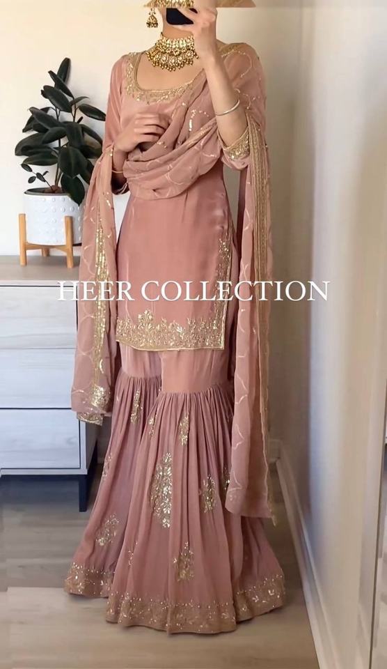 NEW INDIAN/PAKISTANI EMBROIDERY SALWAR KAMEEZ CRISTAL GLASS BEADS STONE DABKA WORK PARTY-WEAR 2024 FATEMA FASHION Faux Georgette