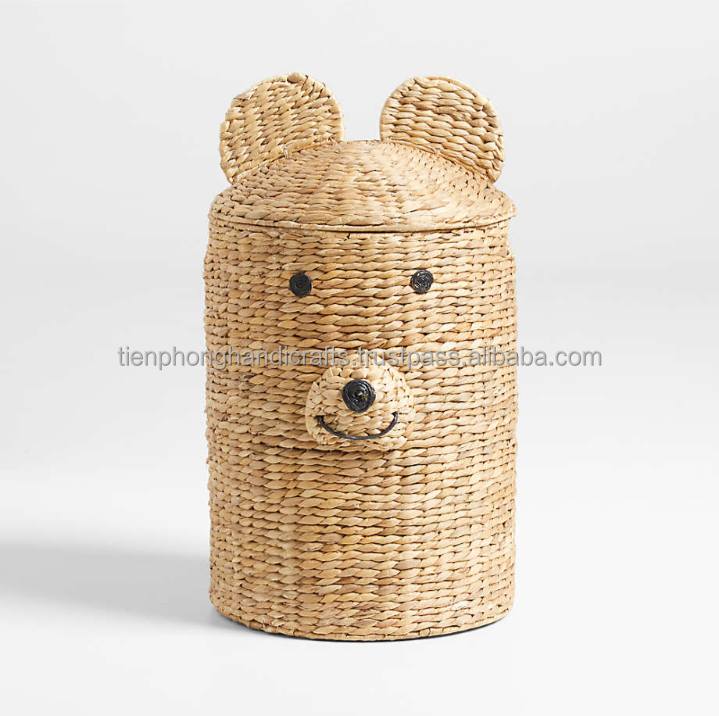 NEW INTERIOR 3 Colors Cute Bear Water Hyacinth Hamper | Clothes Storage Basket for Baby's Room, Gift for Kids, Modern Interior