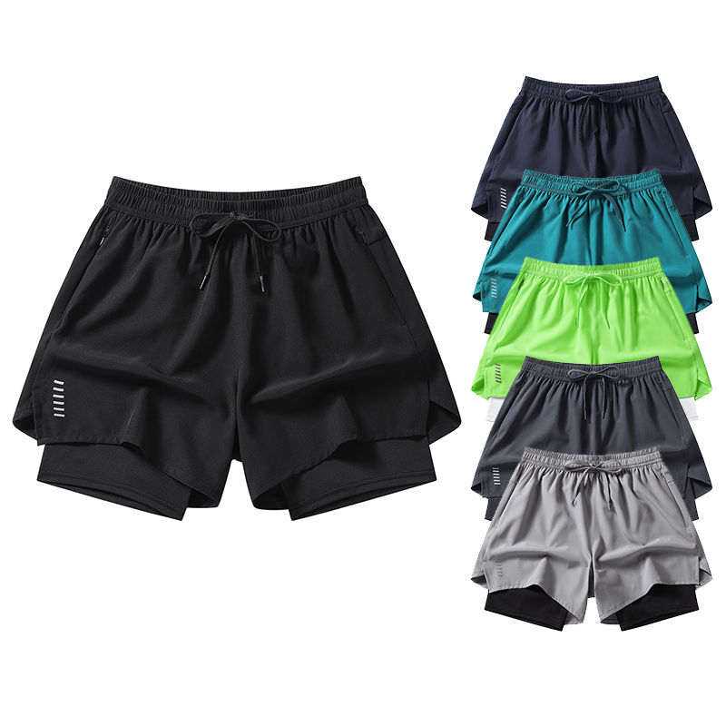 NEW Men Training Shorts Zipper Pocket Double Layer Track Shorts Men Active Wear Quick Dry Gym Shorts