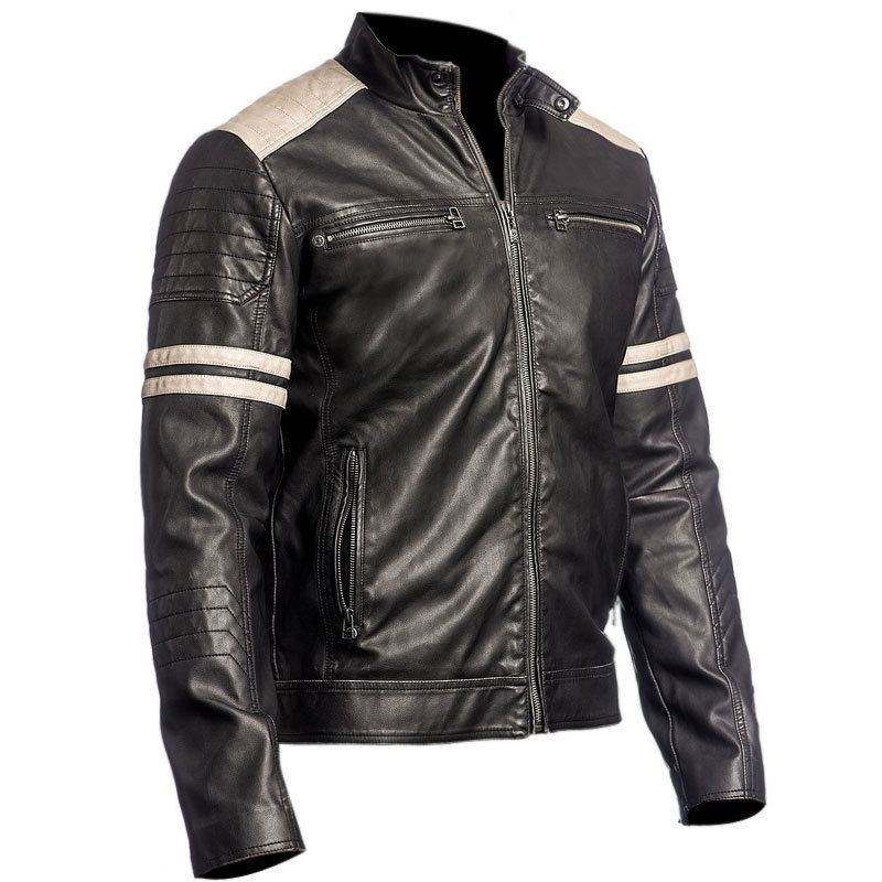NEW Men's Leather Jacket Black Slim Fit Biker Vintage Motorcycle Cafe Racer