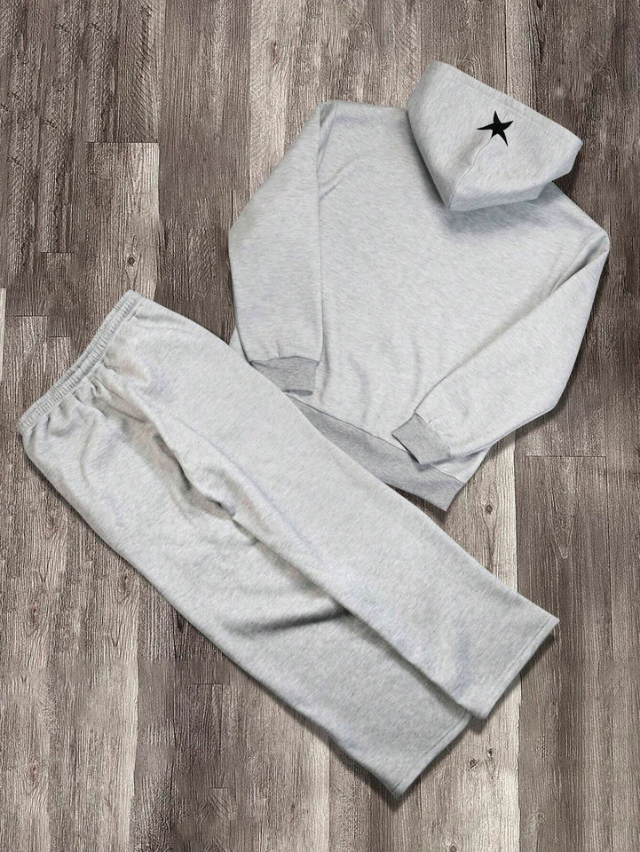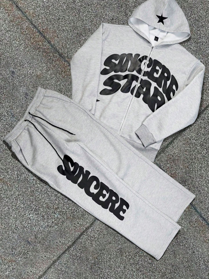 NEW Men's Letter Print Hooded Zip Sweatshirt And Drawstring Sweatpants Set