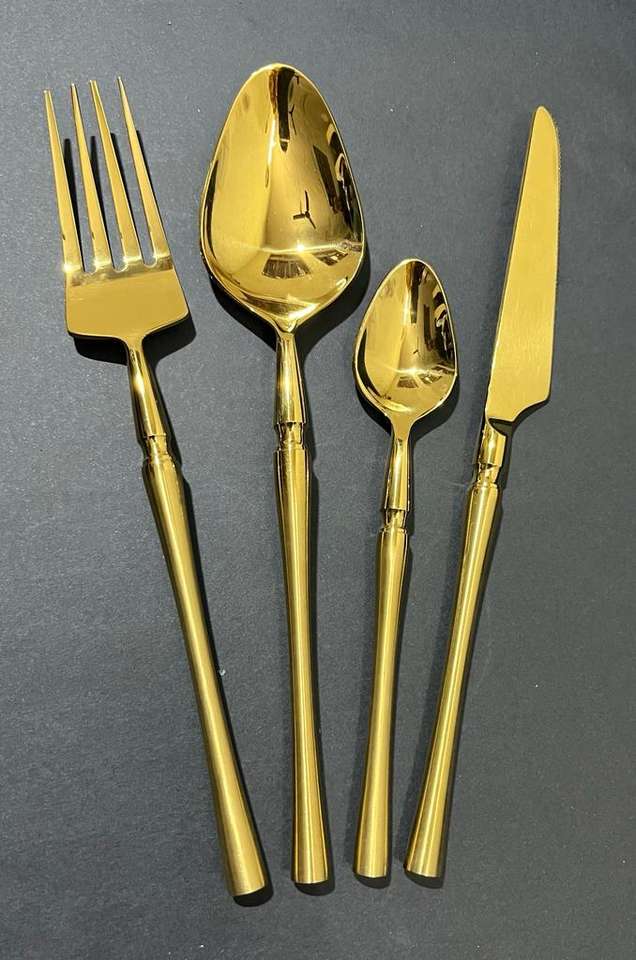 NEW Modern High Class Hotel Dinnerware Brass Knife Fork Spoon Vintage Wedding Gold Cutlery Reusable Spoon & Fork Slim Handle