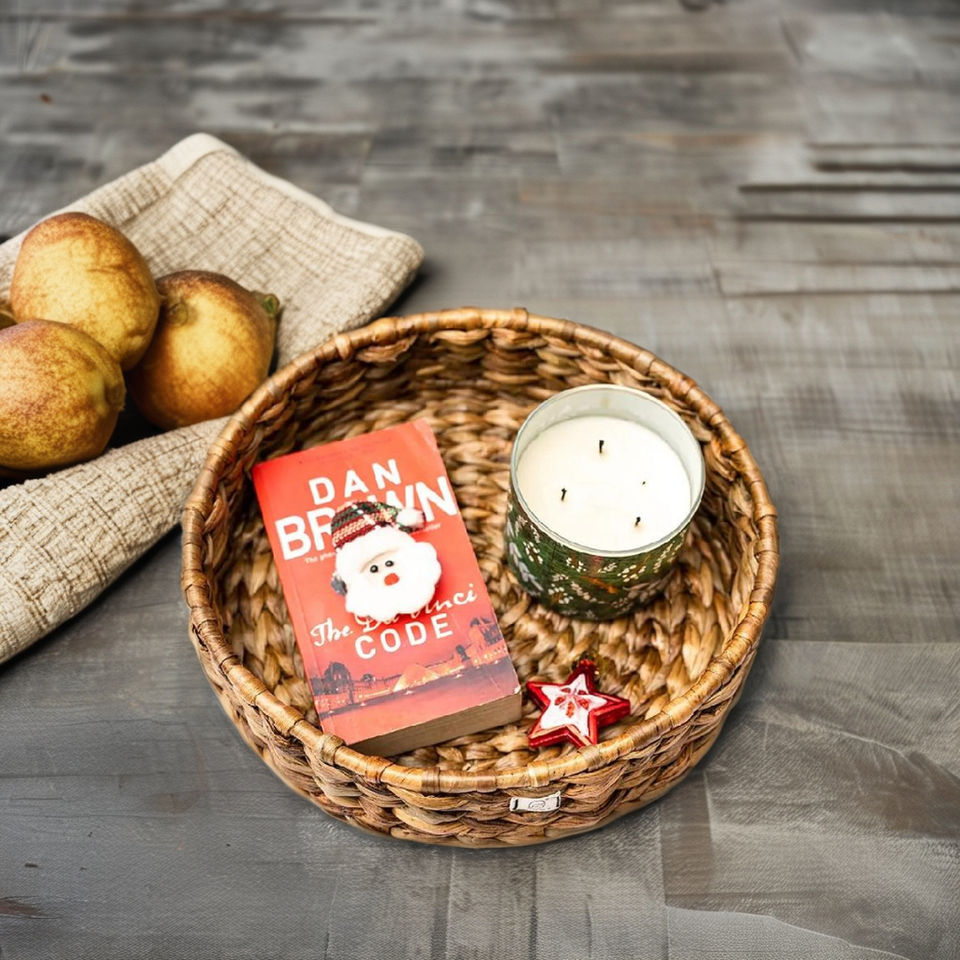 NEW PRODUCT! TienPhong Wholesale 2025 Handwoven Round Water Hyacinth Storage Basket Tray for Gifts