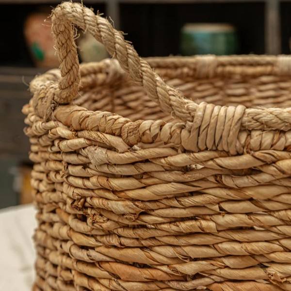 NEW PRODUCT! Tienphong Wholesale 2025 Handwoven Libi Water Hyacinth Basket with Handles for Clothing Storage