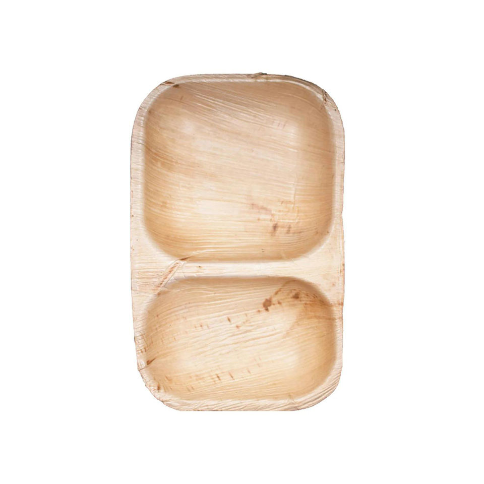 NEW SALE! Tienphong Wholesale 2024! 6" X 11" Rectangular 2 Compartment Bowl | 18 oz | Compostable Palm Leaf Tray