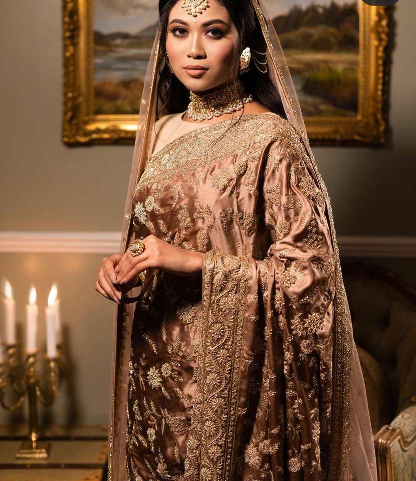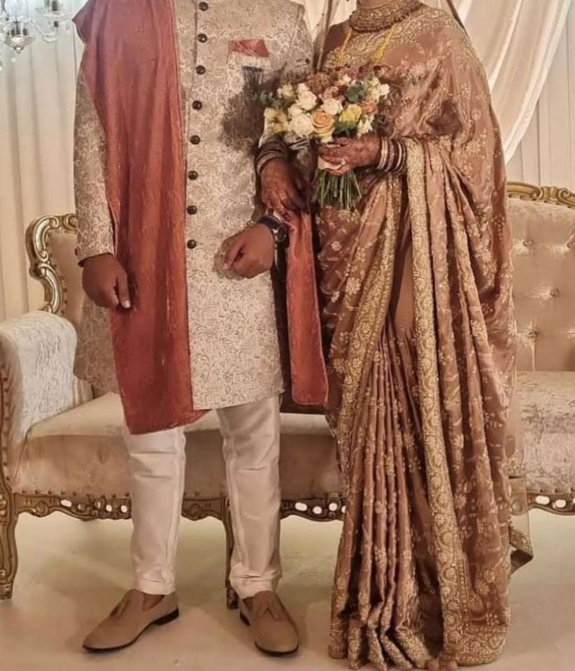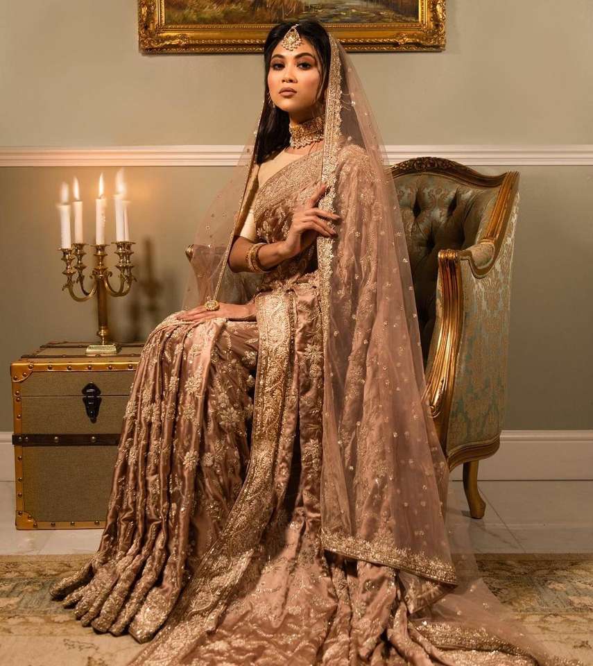--NEW---STYLISH Hand Work on PRETTY BRIDAL--SAREE with Glass Beads Stone & DABKA Work for Wedding/party--2024