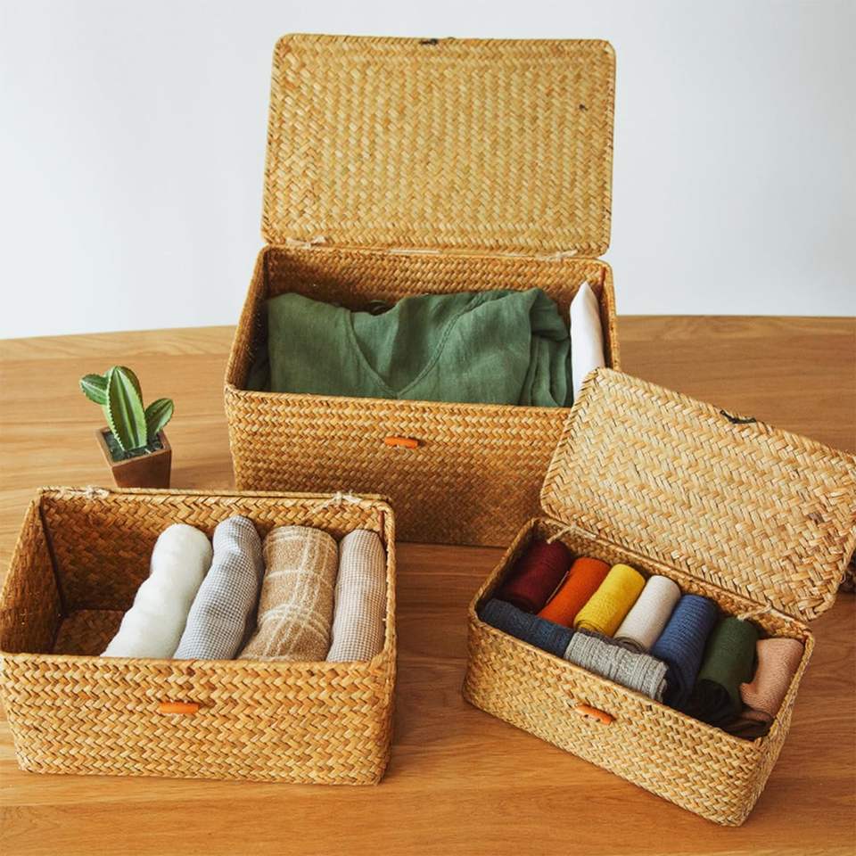 NEW! Tienphong Wholesale Handmade Bamboo Storage Basket Woven Rattan Storage Box with Lids Seagrass Laundry Baskets Organizer