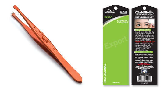 NGHIA T-01 High Quality Plated Stainless Steel Eyebrow Tweezer Manicure Pedicure Set 95.5mm Length Colorful Design Made Vietnam