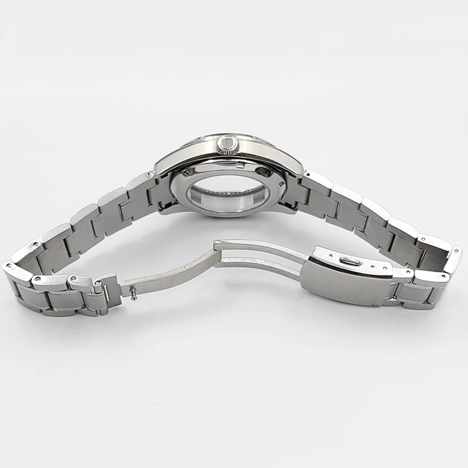 NH35movt 40mm Silver Stainless Steel Watch Case with Strap 5ATM Sapphire Glass Waterproof Fits NH34 NH35Movement 28.5mm Dial