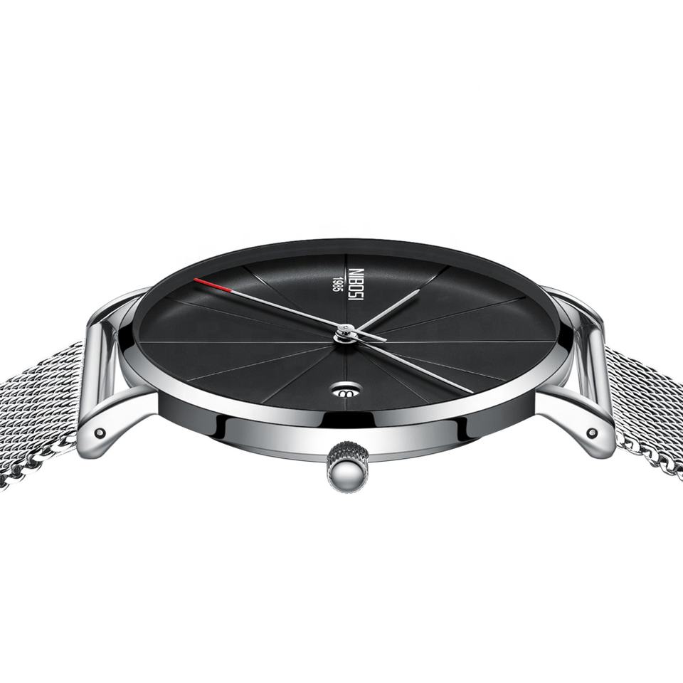 NIBOSI 2321 Blue Stainless Steel Ultra Thin Watches Men Classic Quartz Watches Luxury Date Men's Wrist Watch Relogio Masculino