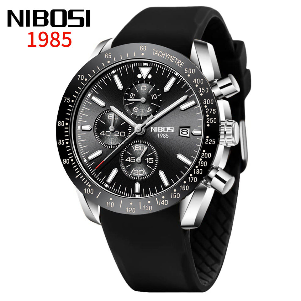 NIBOSI 2615 Casual Fashion Chronograph Auto Date Waterproof Luminous Hands Quartz Rubber Strap Watch