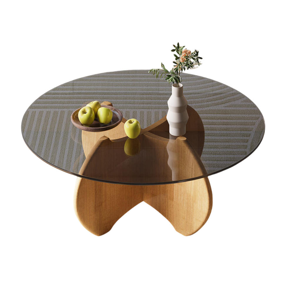 NKAHS Tempered Glass Coffee Table Set Modern Minimalist Light Luxury Round Table Small Space Home Dual-Size Combina