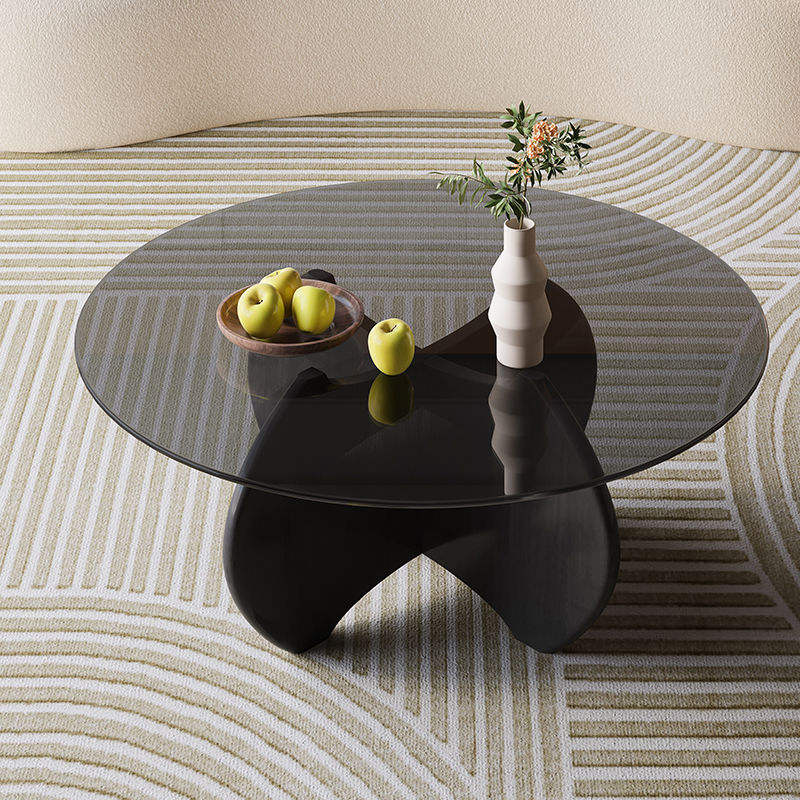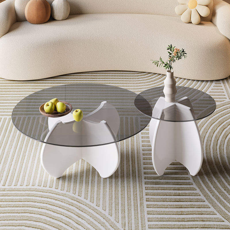 NKAHS Tempered Glass Coffee Table Set Modern Minimalist Light Luxury Round Table Small Space Home Dual-Size Combina