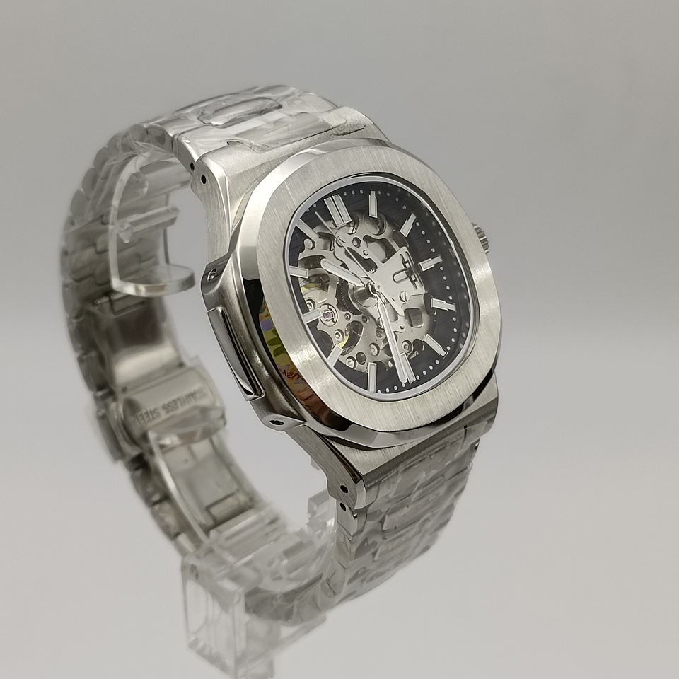 NO LOGO Watch Stainless Steel NH70 Movement Hollow Dial Sapphire Glass 5BAR Waterproof Automatic