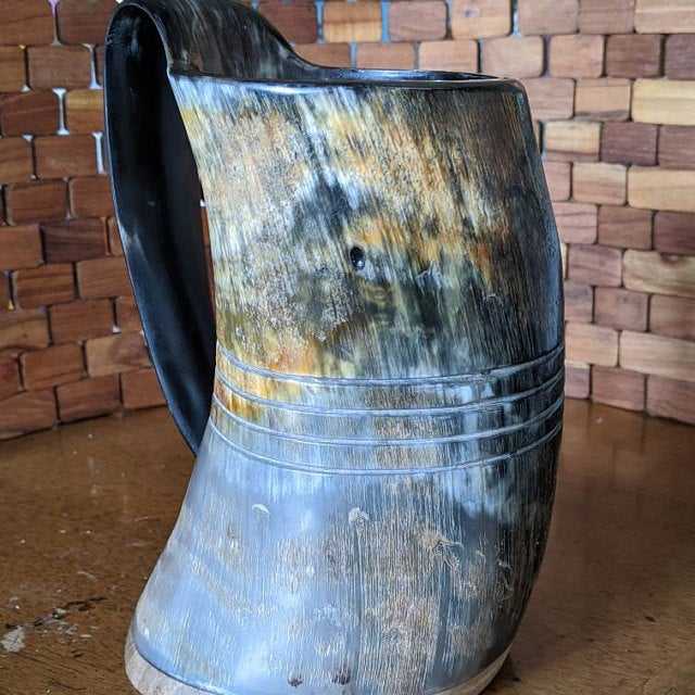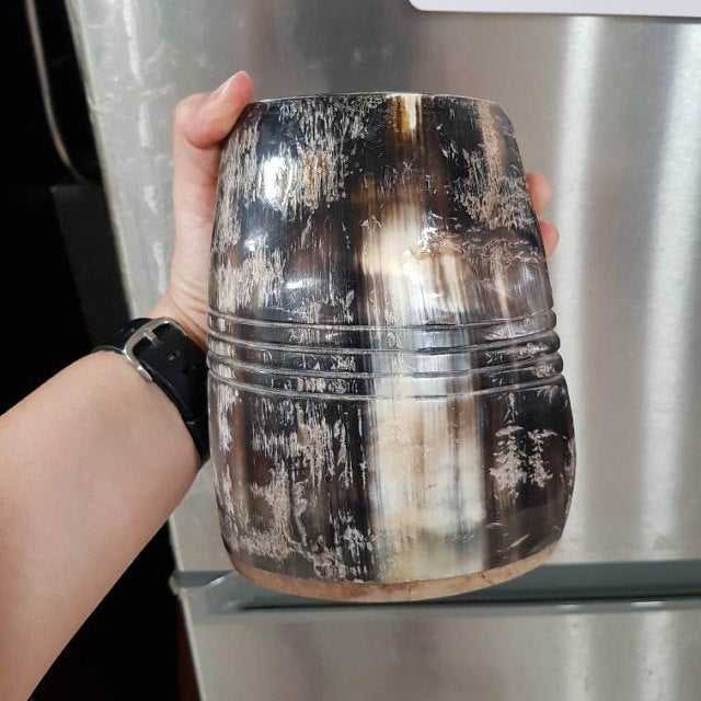 NOORBABA INTERNATIONAL's Handcrafted 100% Natural Ox Horn Viking Drinking Mug Polished Animal Style Craft Product