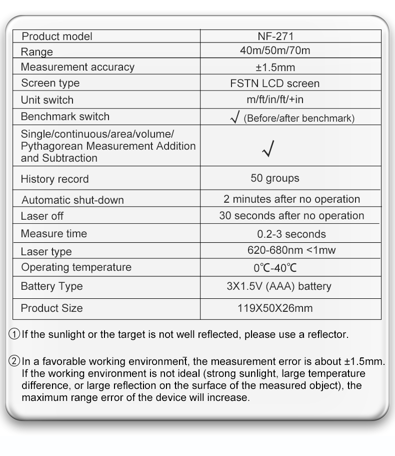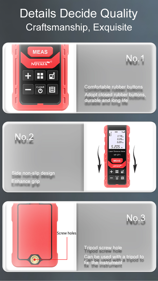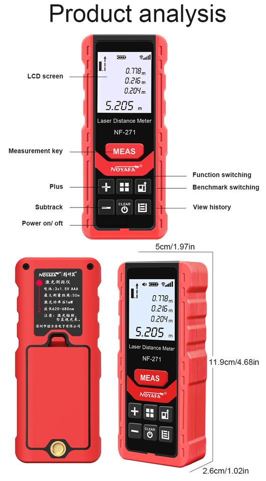 NOYAFA NF-271 Handheld Rangefinder High Precision laser distance meter support 99 sets data records multiple measuring tools