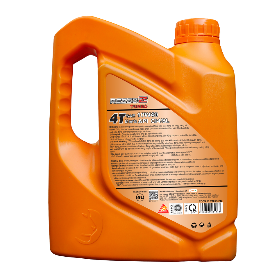 NPOIL Car engine oil RESSO 2 TURBO 10W40 4L 5L 6L Base oil & premium additives Engine Oil High Quality Vietnam