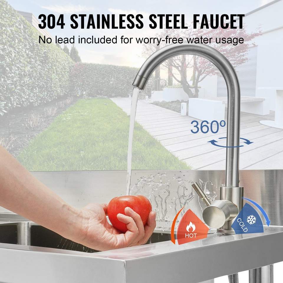 NSF Certified Commercial Single Bowl Kitchen Sink Set 39.4 X 19.1 X 37.4 Free Standing Workbench for Garage Kitchen Sinks