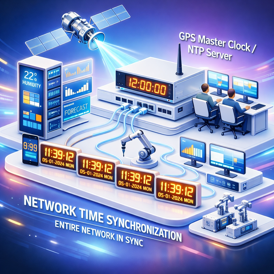 NTP Server Network Time Synchronization System for Industrial & Facility | 14-Digit LED Master Clock System OEM Available