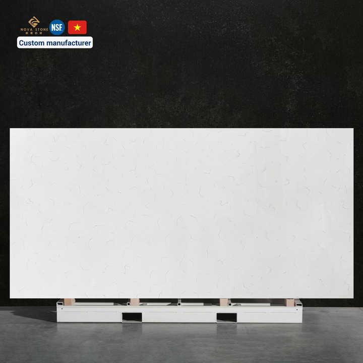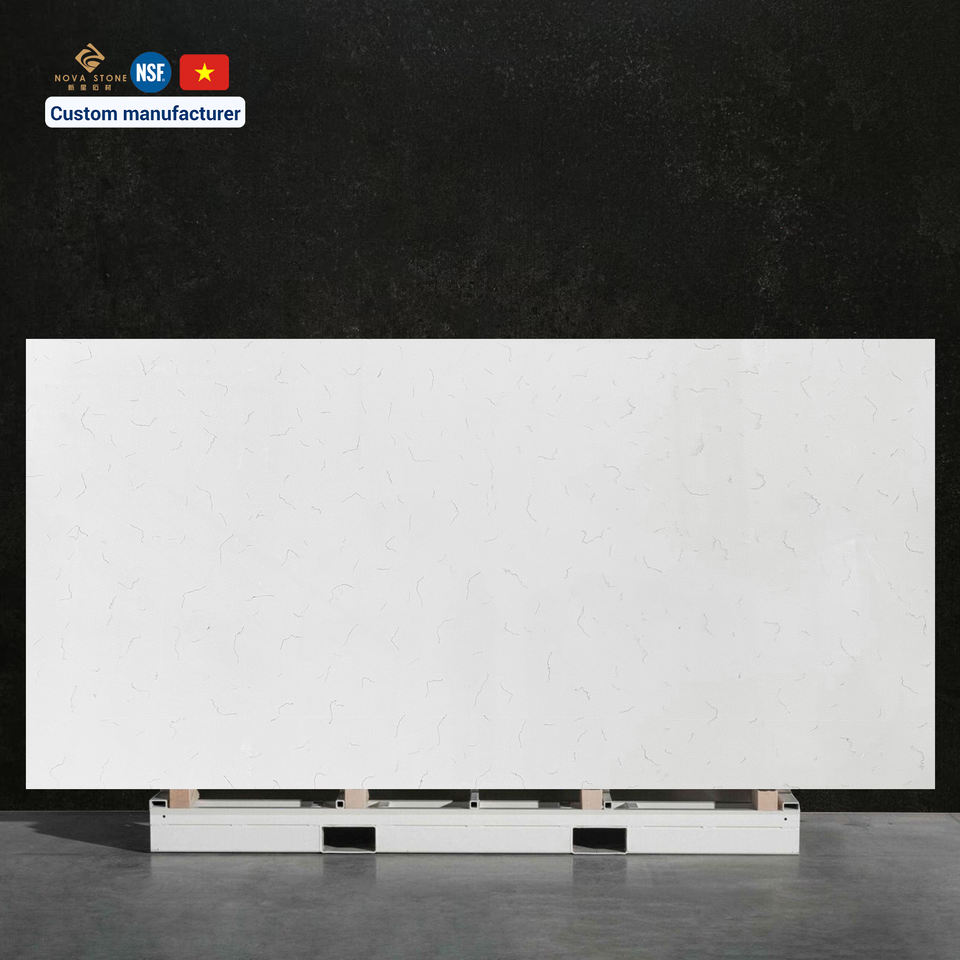 NV235 Custom Fabrication Stylish Etch Resistance Large-Scale Applications Carrara White Man-Made Quartz Stone Backsplash Slab