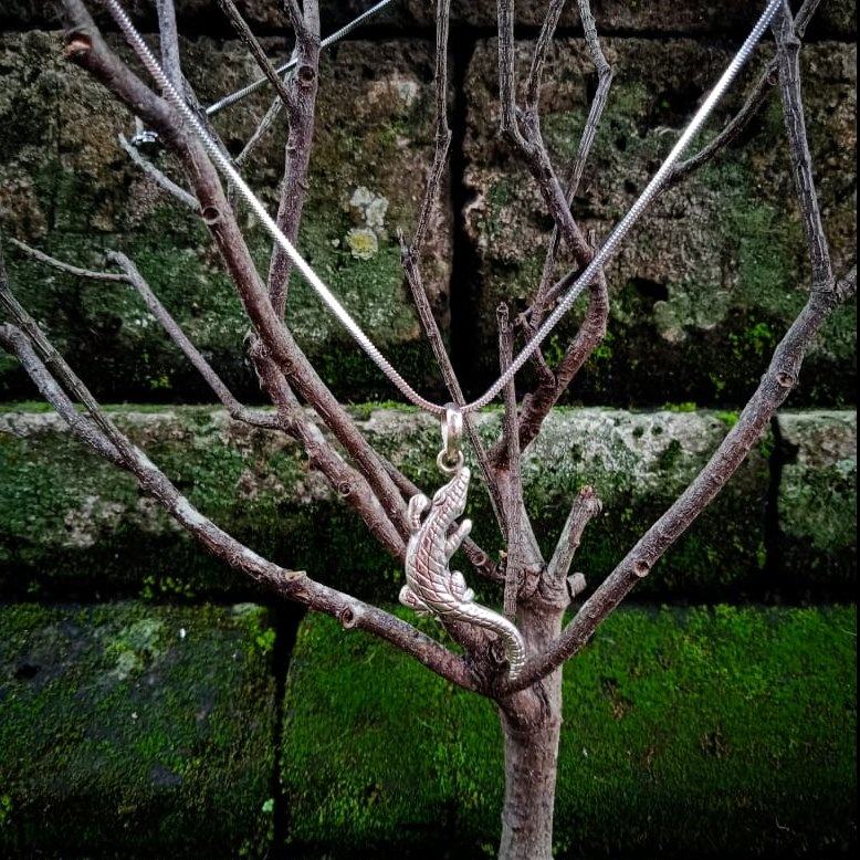 NY-PD018 Silver Gecko Pendant Necklace Charm Gold Plated Sterling Silver Bezel Setting Inlay Gift for Men and Women