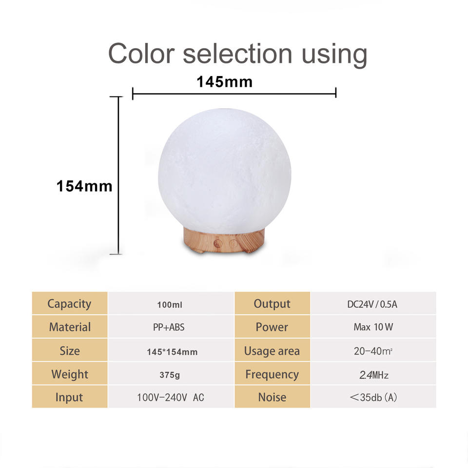 Nagomi Moon Lamp 5V USB Ultrasonic Aroma Diffuser Colorful Light Home Humidifier 0.5L Essential Oil Diffuser