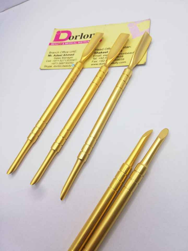 Nail Tool Matte Gold Plated Nail Cuticle Pusher Stainless Steel Custom Logo Spoon Shaped Dual Ended Manicure Cuticle Nail Pusher