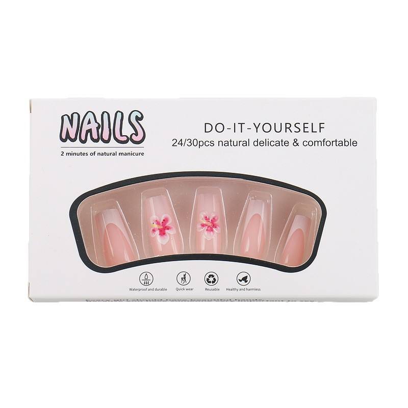 Nails Nude Pink French Style White Edge 3D Flower Wearable Art European and American Cross-Border Square Gentle Sweet Nail Tips