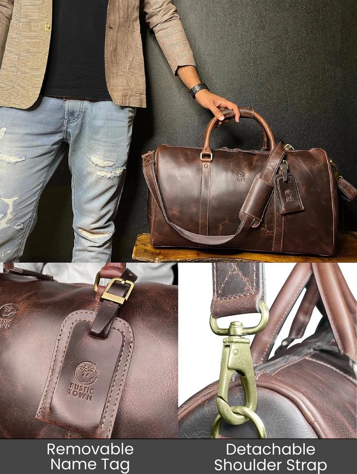 Nando Adventure Casual Leather Duffle Bag Foldable Weekender Travel Gym Sport Durable Polyester Lining for Outdoor Use