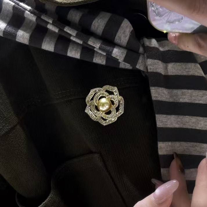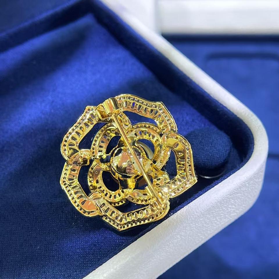 Nanyang Gold Pearl Chest Flower Brooch Sea Water-Hollowed Fashion Crystal Accessory Wholesale and Retail Available