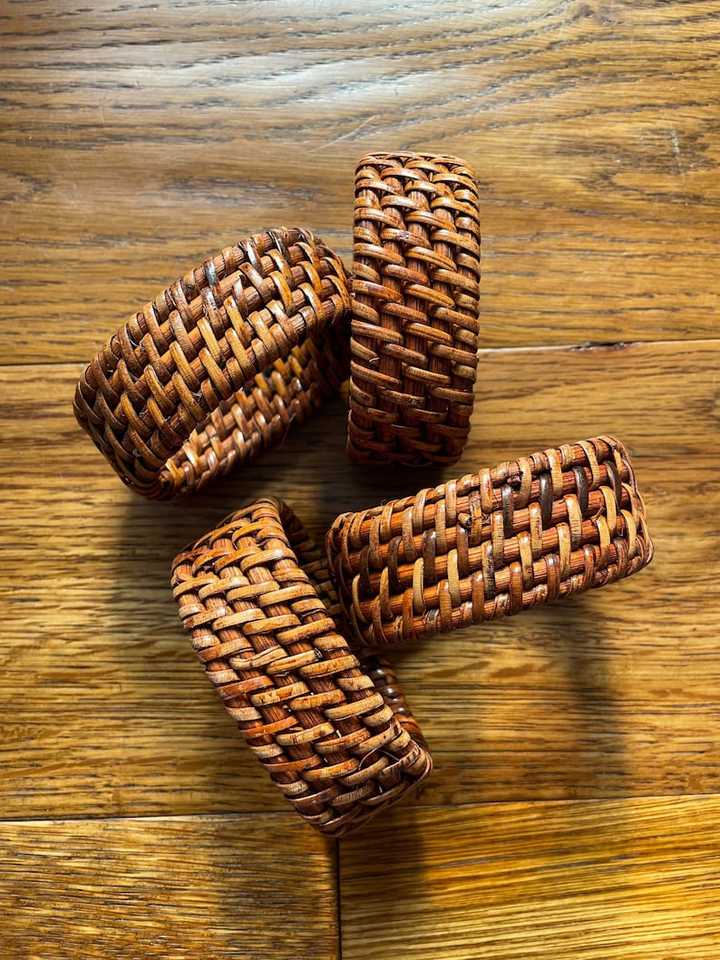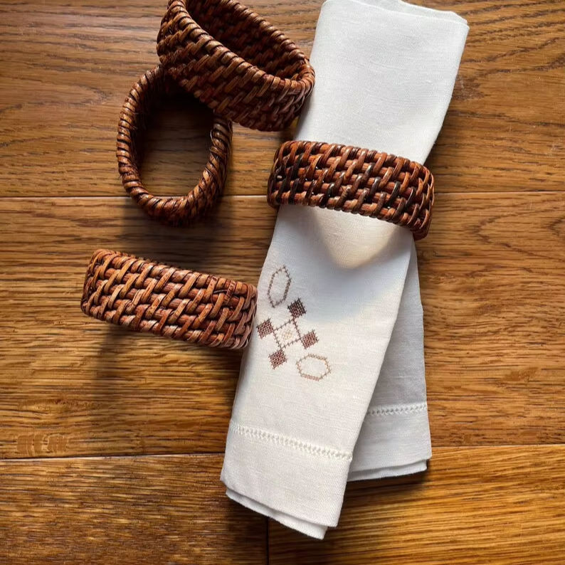 Boho Wicker Napkin Ring Set for Dining Table Decor Natural Raffia Handmade Napkin Holder