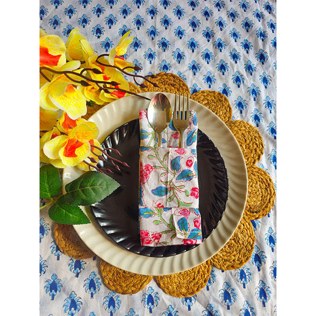 100% Cotton Disposable Napkins Handmade Block Printed Soft Fabric Dining Table Cover Decor Wooden Printed Napkins