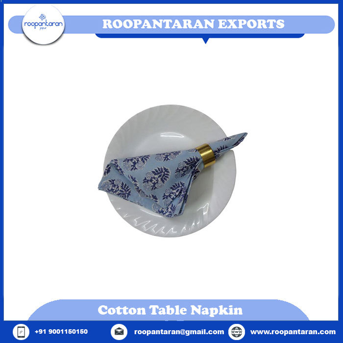 Best Selling Eco-Friendly Durable Reusable 45x45cm Handmade Block Printed Embroidered Pure Cotton Table Napkins